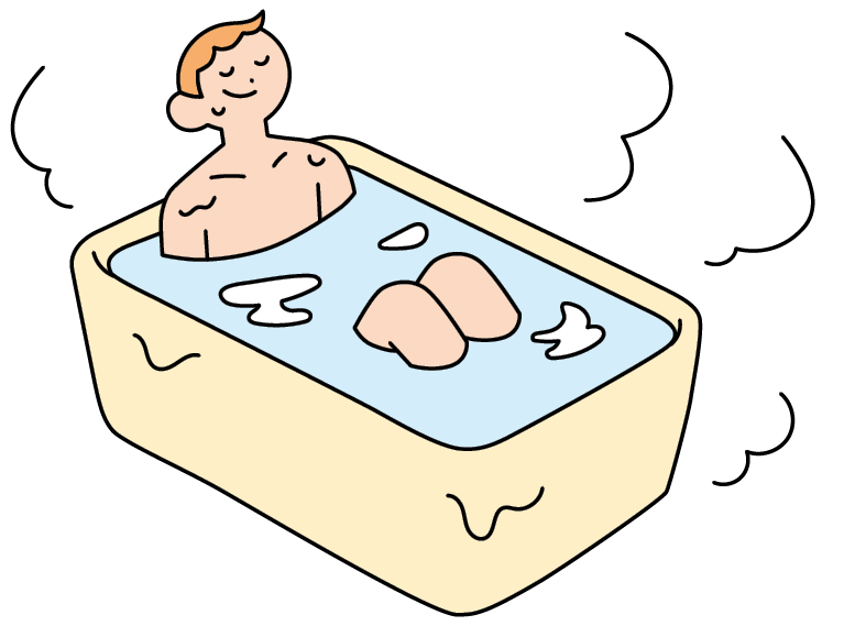 38~40℃の湯船にゆっくりつかると血流がよくなり、リラックス効果も。